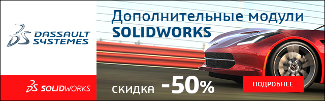 Мощные дополнительные модули SOLIDWORKS со скидкой 50%![]() Качество, скорость и инновации в проектировании теперь доступны каждому инженеру! В процессе работы над моделью возникает большое число смежных задач, связанных с моделированием поведения материалов, анализом, виртуальным тестированием изделий, проведением инженерных расчетов, подготовкой изделий к производству, проектированием встраиваемых электрических систем, созданием анимаций или интерактивного 3D-контента. Для решения подобных задач инженерам требуются удобные в использовании специализированные инструменты. Только до конца июля у вас есть уникальная возможность приобрести дополнительные модули SOLIDWORKS со скидкой 50%. Теперь любой проектировщик, инженер или аналитик может вывести свои изделия на новый уровень качества и инноваций, используя мощные инструменты, интегрированные непосредственно в рабочую среду проектирования SOLIDWORKS. Условия акции: