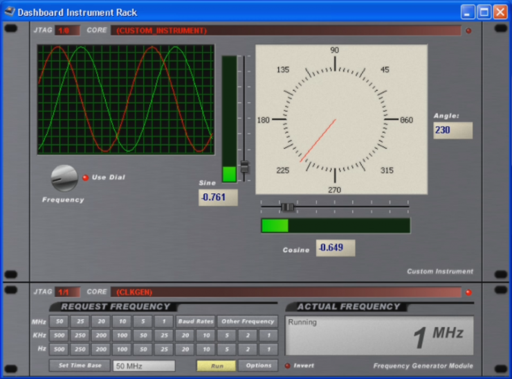 NanoBoard содержит программируемый синтезатор частот, работающий в диапазоне от 6 до 200 МГц. Частота синтезатора может устанавливаться из управляющей оболочки DXP или непосредственно из проекта, запускаемого в ПЛИС.