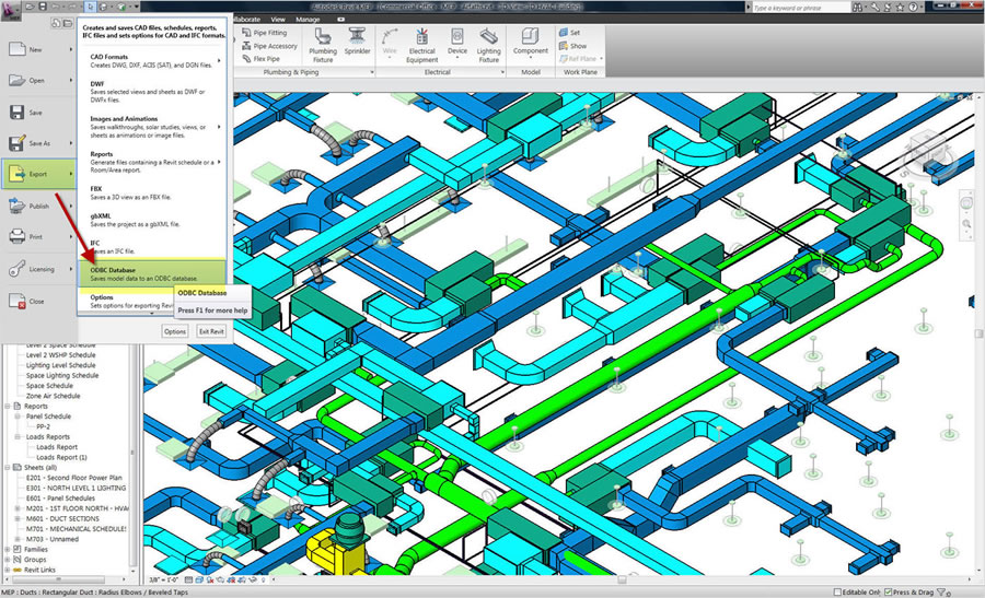 О продукте Revit MEP 2014Revit предоставляет проектировщикам отопительных, вентиляционных, электрических и санитарно-технических систем инструменты, позволяющие создавать системы любой сложности. Благодаря поддержке технологии информационного моделирования зданий (BIM) инженеры могут вести проектирование с высоким качеством, выполнять расчеты и выпускать рабочую документацию. Программный продукт применяется на стадиях проектирования и строительства, обеспечивая эффективность инженерных систем. Основой для процесса проектирования являются насыщенные информацией модели. Инструменты проектирования внутренних инженерных систем зданий позволяют выполнять расчеты систем и выпускать рабочую документацию по ним. Основные возможностиПрименение физических материалов при анализе эксплуатационных характеристикПрименение физических материалов повышает эффективность анализа эксплуатационных характеристик, основанного на технологии BIM. Назначаются тепловые и конструктивные свойства ограждающим конструкциям. Конструктивные тепловые параметры элементов Revit теперь можно экспортировать в формате gbXML для использования в специализированных расчетных приложениях. Усовершенствованный Revit ServerRevit Server предоставляет пользователям больше возможностей контроля над моделями Revit, находящимися в централизованном хранилище. Локальные ускорители теперь могут подключаться к нескольким узлам, позволяя организовывать распределенные сети Revit Server. Улучшен также рабочий процесс в Vault Collaboration AEC. Улучшенные средства визуализацииRevit и Revit Architecture обладают улучшенными возможностями визуализации и предоставляют пользователям больше контроля над внешним видом проектов. Новая функция «Raytracing» осуществляет интерактивный рендеринг в реальном времени и позволяет размещать на видовых экранах фотографические элементы. Фантомные поверхности и переопределения прозрачности могут настраиваться для каждого элемента здания. Фотографические элементы отображаются в реалистичном визуальном стиле с различными вариантами фона, что позволяет готовить высококачественную презентационную графику. Улучшенное взаимодействиеRevit предоставляет возможность импорта и экспорта чертежей в формат Bentley Microstation V7 и V8; кроме того, улучшен экспорт в форматы DWF™ и DWG™. Это позволяет организовывать более надежные и гибкие процедуры в рабочем процессе. Улучшенная поддержка Industry Foundation Class (IFC)Revit получил сертификат совместимости с BuildingSMART International Industry Foundation Class (IFC) версии 2x3. Это означает, что Revit теперь удовлетворяет требованиям мировых отраслевых стандартов, в том числе GSA. Модуль экспорта из Revit в IFC, исходный код которого является открытым, теперь поддерживает перспективные отраслевые стандарты. Вы сами можете предлагать изменения для процедуры экспорта в IFC, приводящие ее в соответствие c требованиям национальных стандартов. Благодаря этому обмен информацией со сторонними приложениями становится более эффективным. Revit Exchange App StoreRevit Exchange App Store – это веб-платформа, предоставляющая удобный доступ к надстройкам и библиотечным компонентам для Revit. Улучшенные размерыВ Revit улучшены функции нанесения размеров. Новый инструмент простановки диаметров позволяет выбирать и удалять отдельные сегменты в многосегментной размерной цепи. Кроме того, теперь в сегментах можно ото