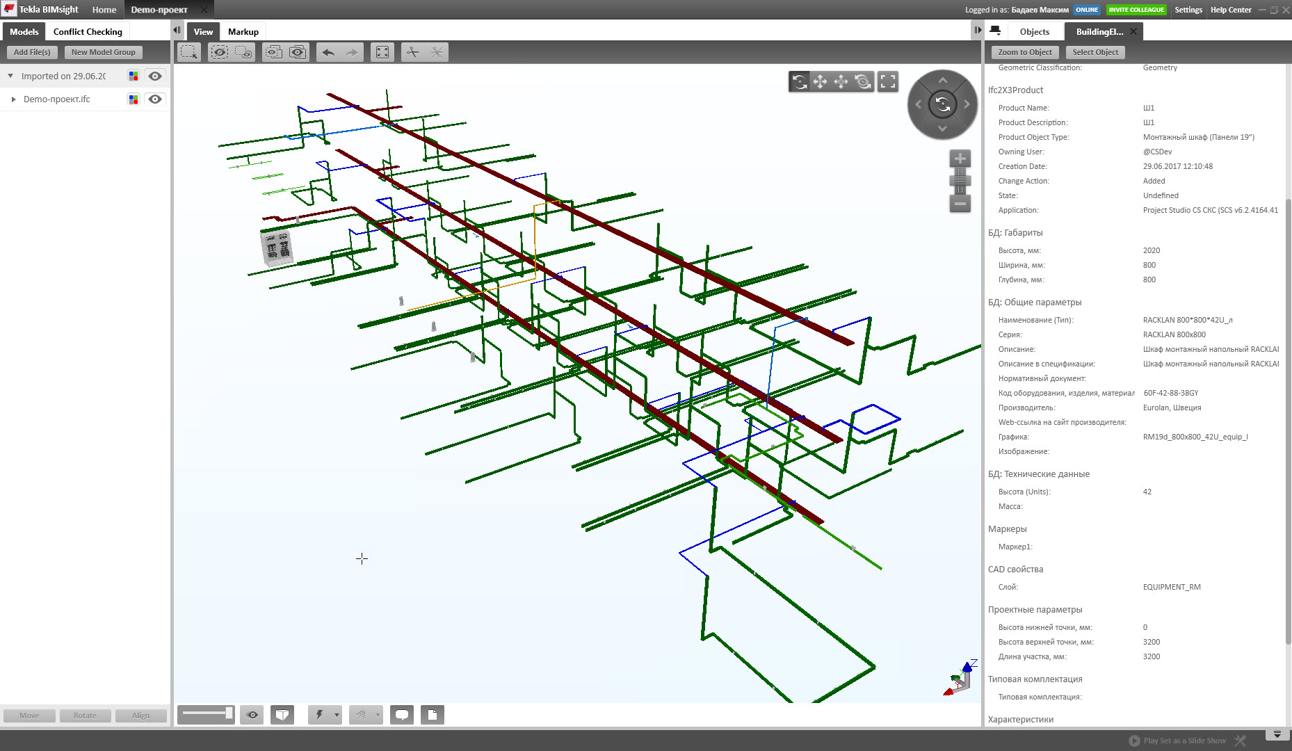 В качестве отчетного документа может быть использована и 3D-модель проектируемой системы. 3D-модель создается на основе расставленного оборудования и проложенных кабельных каналов, а также присутствия в каждом объекте, установленном на плане этажа, параметра высоты.