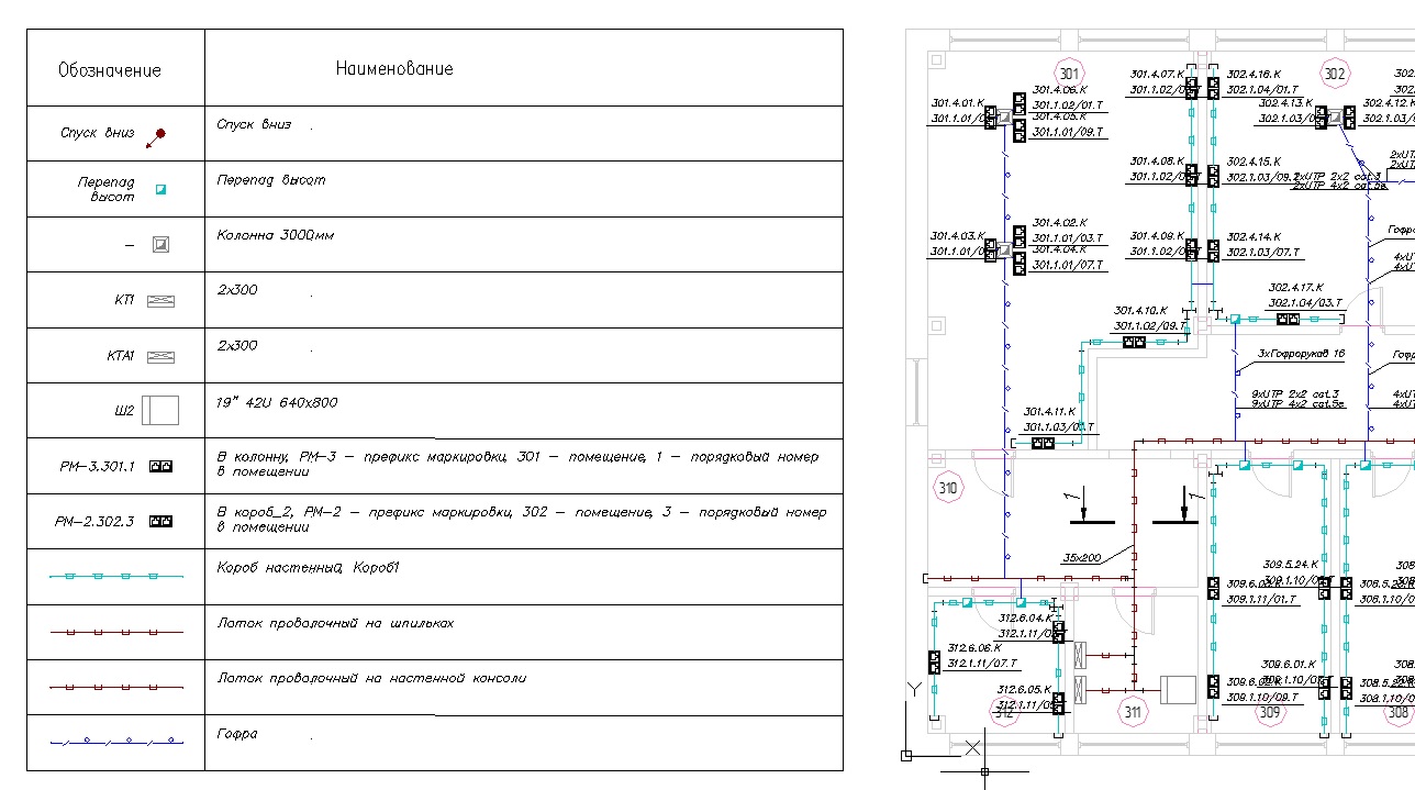 - таблицы прокладки кабеля;