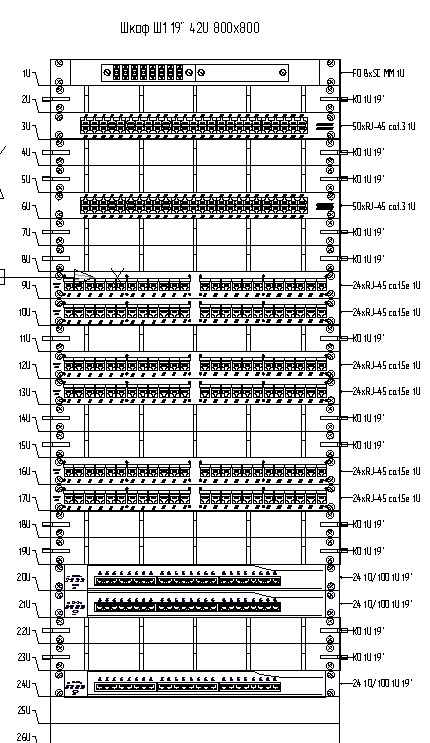 - автоматически создаваемую схему заполнения монтажного шкафа коммутационным оборудованием;