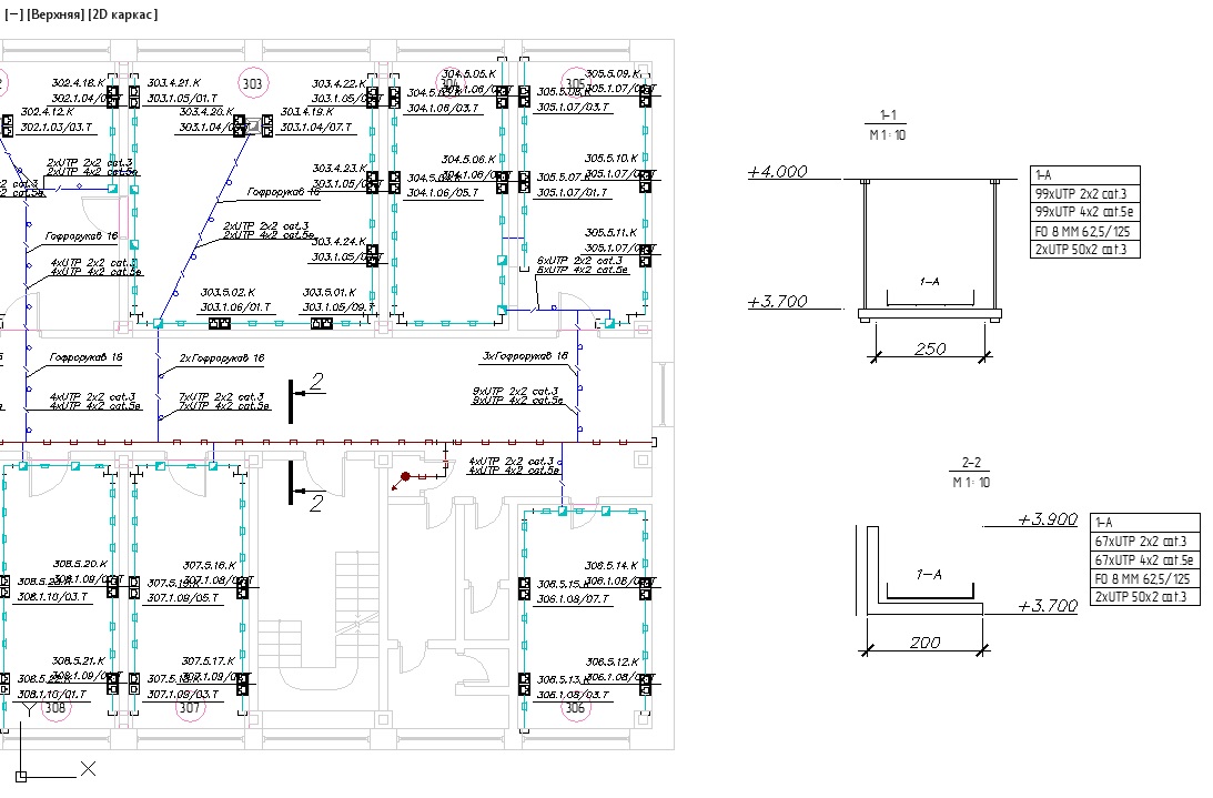 - проектирование магистральных кабелей и кроссов телефонии здания;