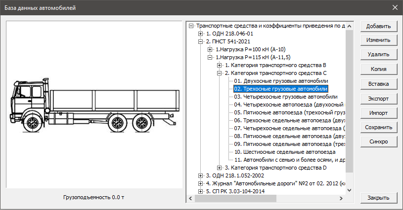 Базы автомобилей, материалов позволяют быстро заполнять либо редактировать исходные данные по автомобильному потоку, конструкции дорожной одежды.