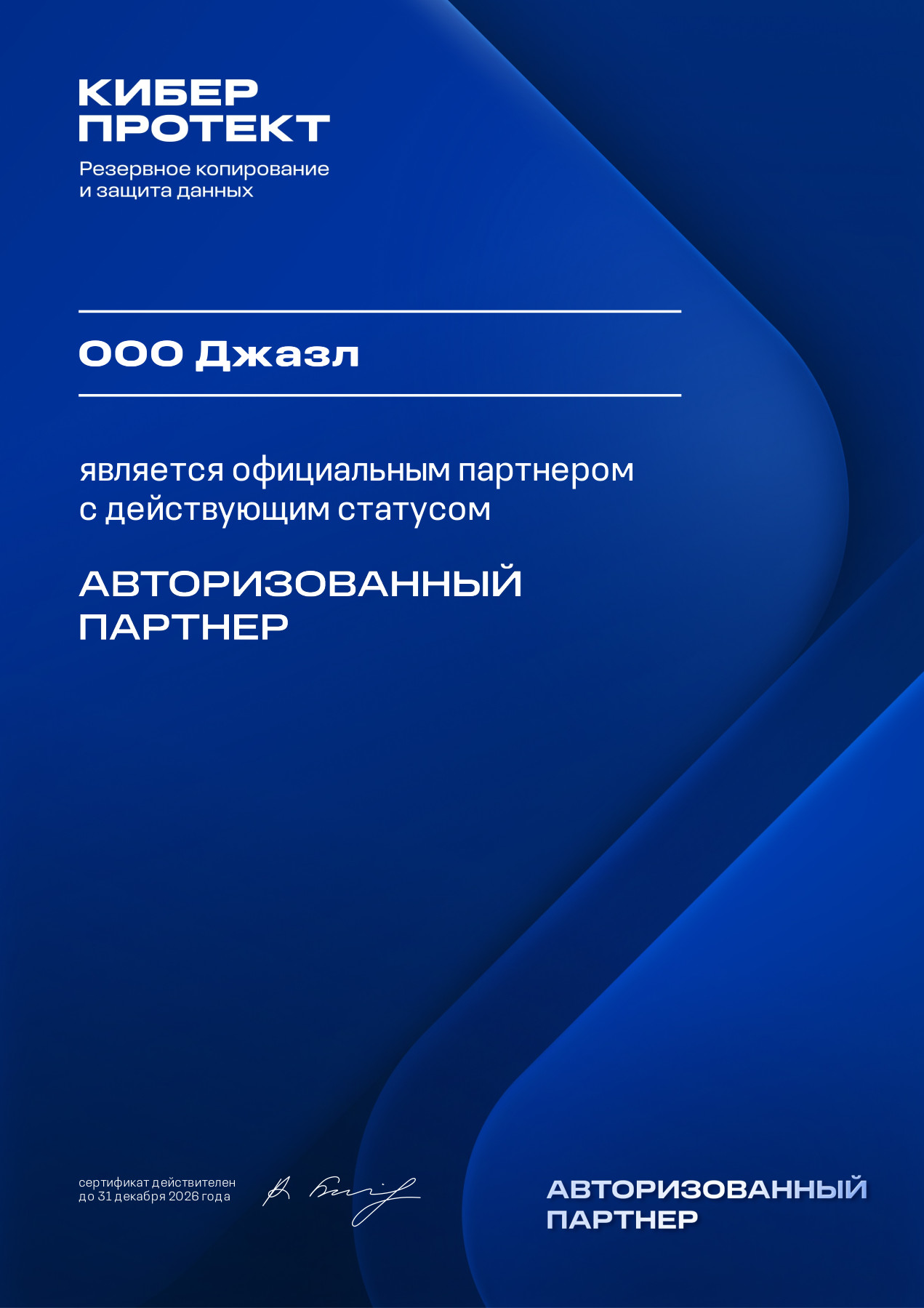 Сертификат на сопровождение ПО Кибер Файлы 10000+ пользователей