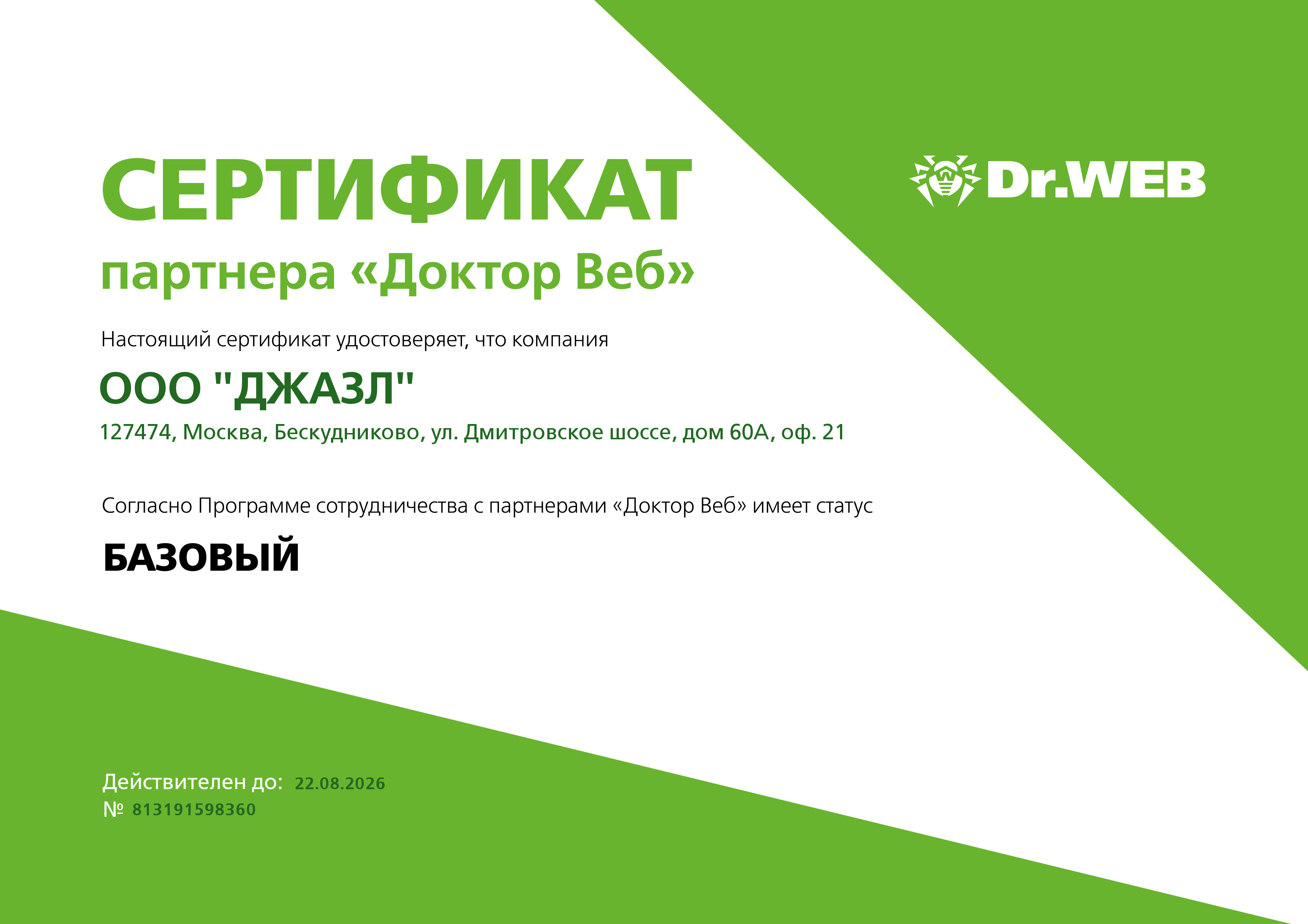 Компания "Доктор Веб" - производитель и поставщик антивирусных решений семейства Dr.Web® - основана в декабре 2003 года автором антивирусных программ Игорем Даниловым с целью координации процессов разработки и продвижения антивирусов Dr. Web, оказания эффективной технической поддержки самого высокого уровня в формате 24х7х365 всем категориям потребителей, использующим для защиты своих информационных систем антивирусные программы Dr.Web.